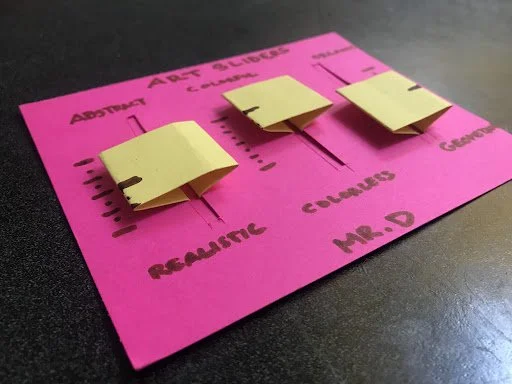 Choose an artwork, essay, poem, book cover, data visualization or other form of communication. Create a slider using these directions where each parameter represents a choice the creator made to communicate a message. Move the parameters to reflect the choices they made.